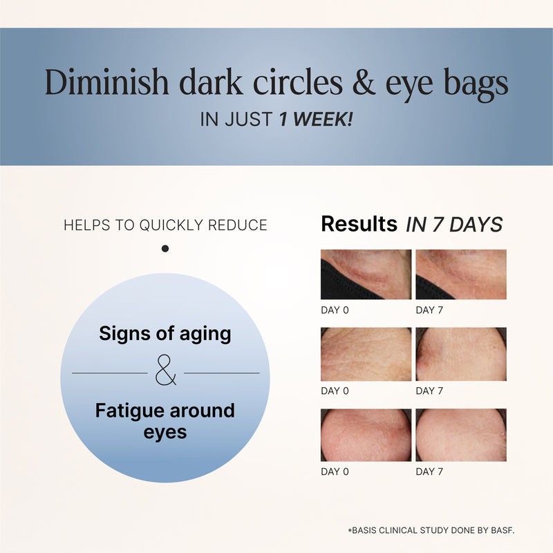 Incorporate this eye serum for wrinkles and dark circles into your daily skincare and witness its transformative impact on your under-eye area. This powerful serum works to reduce puffiness in just 3 hours and diminishes dark circles in as little as one week.